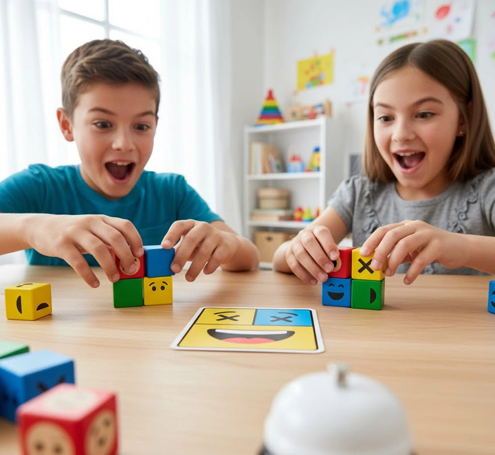 Unlock endless fun and creativity with the Face Changing Magic Cube Game, the ultimate expression puzzle challenge designed for both kids and adults! This exciting board game turns learning into an adventure with colorful face-patterned cubes and quick-thinking matching cards. Players race to recreate the expressions shown on the card and the first one to hit the bell wins!