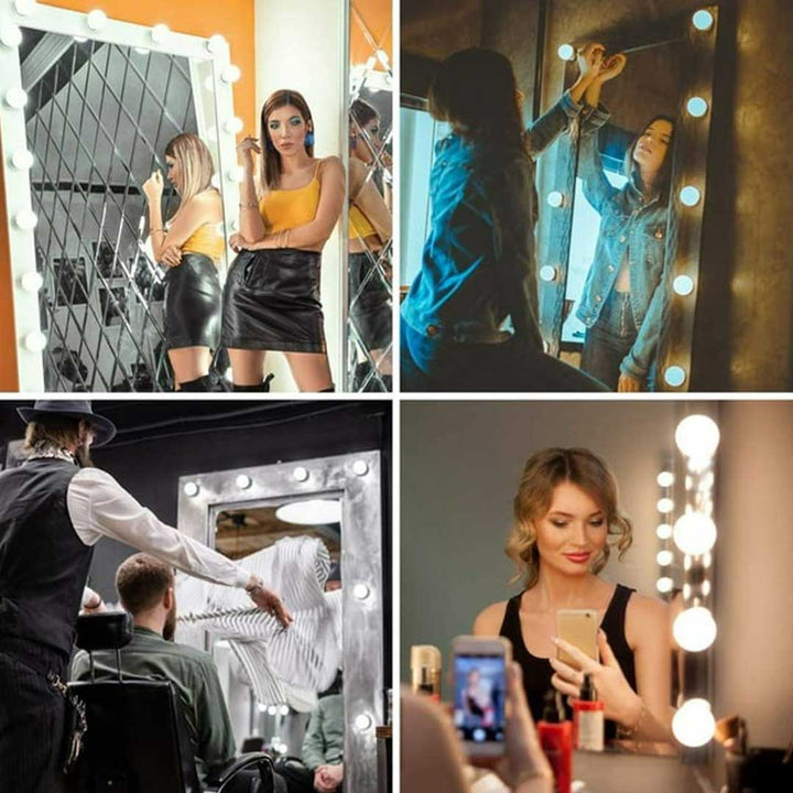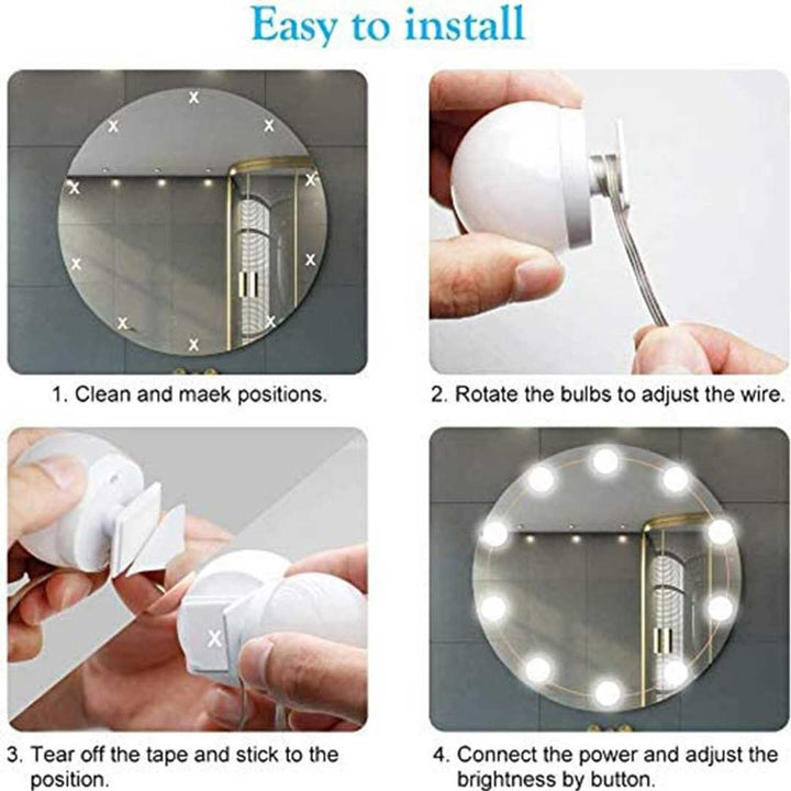 Installation is a breeze with strong double adhesive sticky pads that securely hold the lights in place. The wires between two light bulbs are twistable and hidden, resulting in a clean and organized appearance for your mirror. Elevate your makeup and grooming routine with the New Three-Color Temperature Adjustable Dimmable LED Hollywood Light Mirror Lamp – the ultimate blend of style, functionality, and safety.