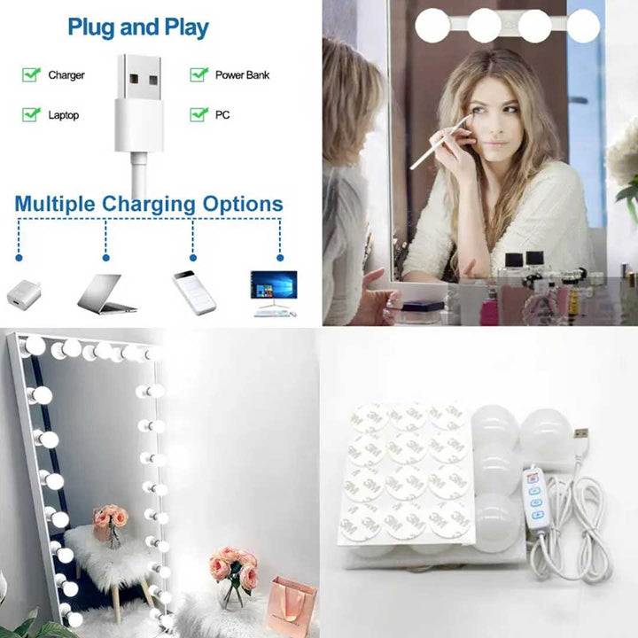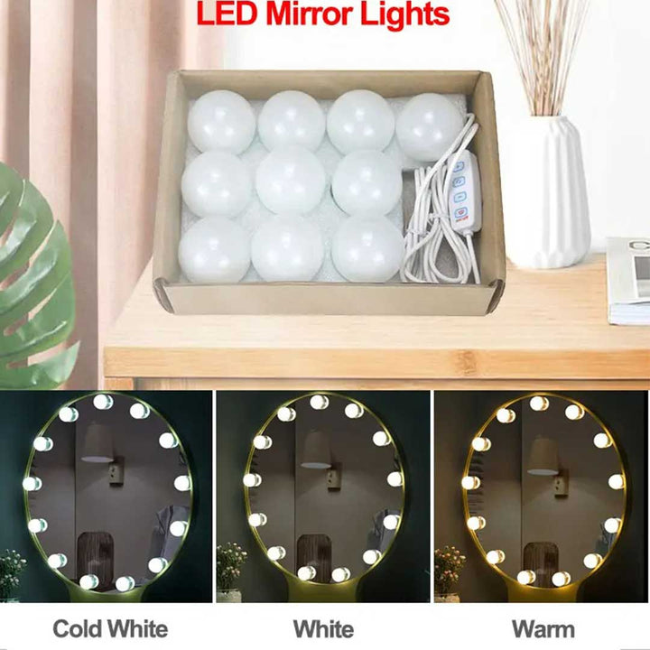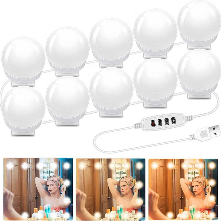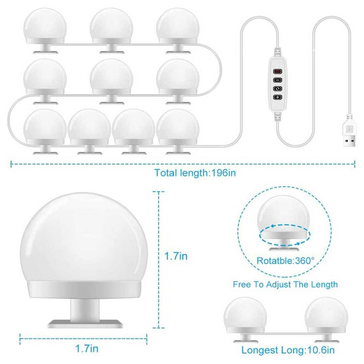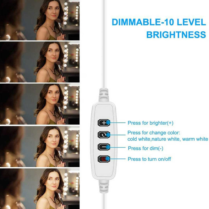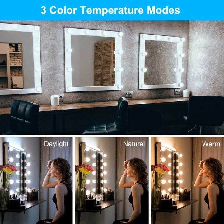 Introducing the New Three-Color Temperature Adjustable Dimmable LED Hollywood Light Mirror Lamp, featuring 10 bulbs for an impeccable makeup experience. This 14 Dimmable Vanity Makeup Mirror LED Lights Kit is designed to enhance your vanity table, dressing mirror, or bathroom wall-mounted mirrors. It makes for the perfect gift idea, especially for teenage girls and daughters.